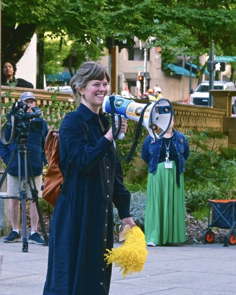 Sarah Radcliffe, Government Relations Director of Habitat Portland Region, spoke at the rally and the city council meeting.