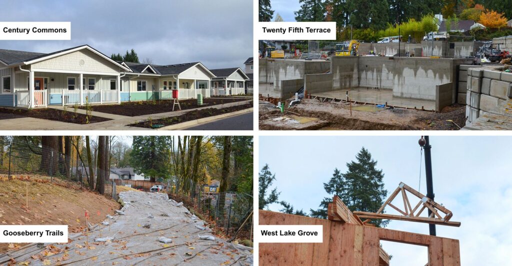 When it is complete, West Lake Grove will bring much needed affordable housing opportunities to Lake Oswego. Its 23 homes will feature six different floor plans: 14 homes will have 4-bedrooms, and nine will have 3. There will be a natural play area for the community to gather.