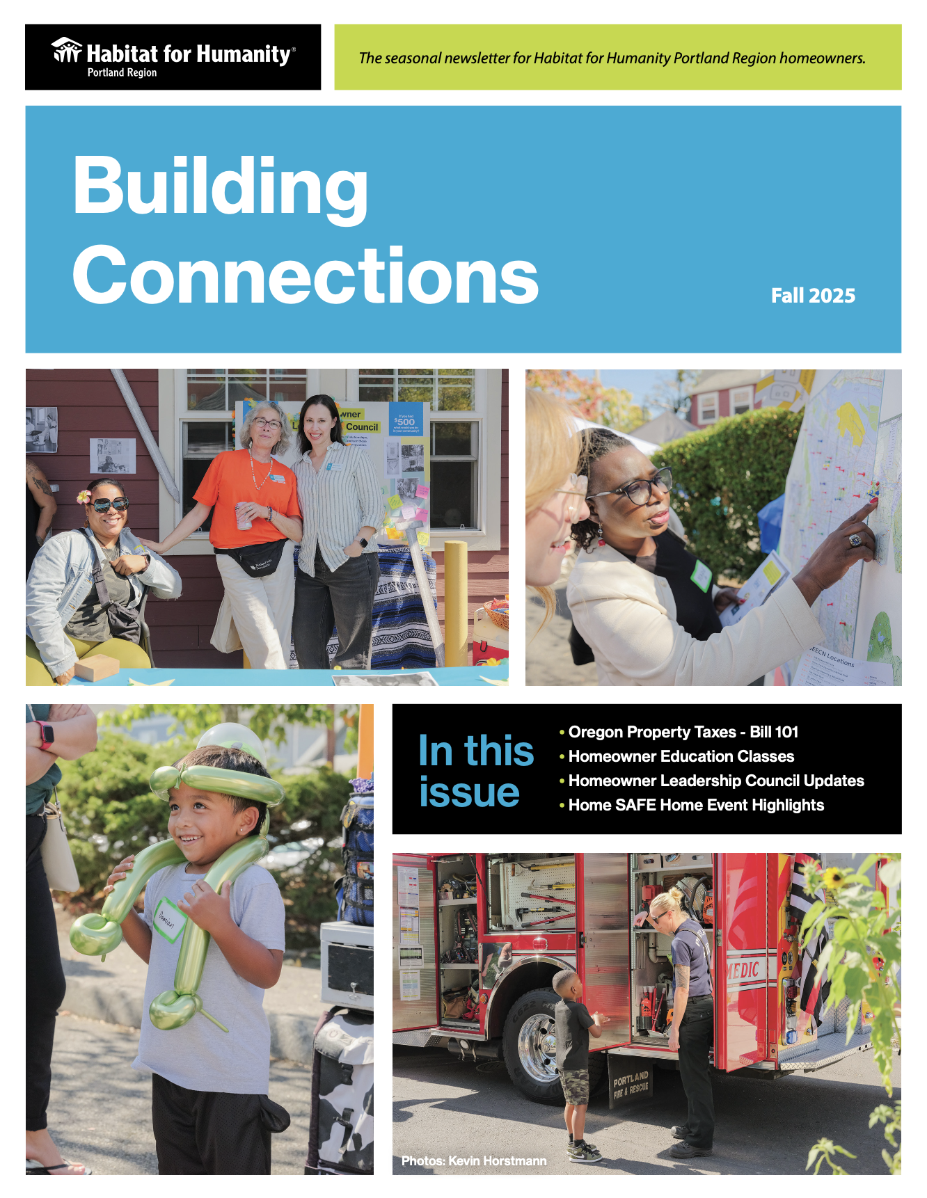 The Building Connections homeowner newsletter is a quarterly print and digital newsletter mailed to our homeowners that provides stories, valuable information, and important events that affect Habitat homeowners.